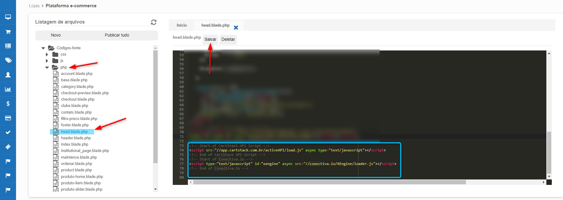 Após inserir os códigos, clique em Publicar tudo para aplicar as mudanças.