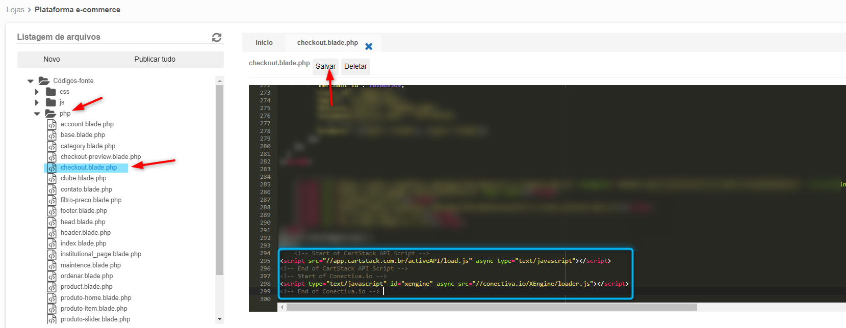 Abra também o arquivo checkout.blade.php e cole os scripts novamente.