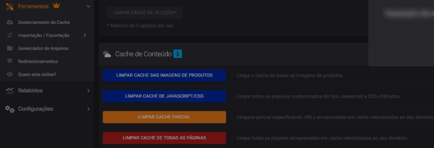 Limpeza de cache: Acesse o menu Ferramentas > Limpar cache de todas as páginas.